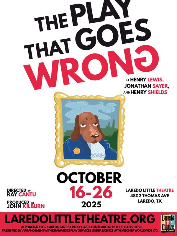 The show will run October 16-26, 2025, as follows: Oct. 16, 17, and 18 at 8:00 p.m. and Oct. 19, at 3:00 p.m. as well as Oct. 23, 24, and 25 at 8:00 p.m. and Oct. 26, at 3:00 p.m. at the Laredo Little Theatre, located at 4802 Thomas Ave.