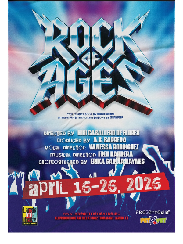 The Laredo Little Theatre is proud to present its Spring Musical Production, ROCK OF AGES, directed by Gigi Caballero de Flores and produced by A.B. Barrera in conjunction with the commemoration of the Theatre’s 115th Anniversary (founded in 1911). The electrifying production includes vocal direction by Vanessa Rodriguez, Fred Barrera serving as musical director, and Choreography by Erika Garcia Haynes.